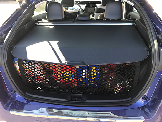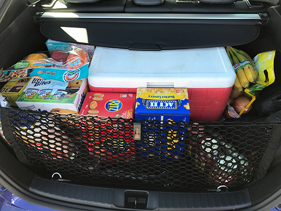 While it drove really well, I was really curious to see if the rear cargo room was large enough for all my purchases. As anyone who shops Sam’s Club or Costco knows, the box sizes of many of the items is quite large. I was incredibly skeptical of the cargo room and had plans to put items in the passenger seat and/or below the boys’ feet. My skepticism was unfounded and the Prius handled all my purchases even allowing me to utilize the cargo cover. This was helpful to keep the cooler items colder.